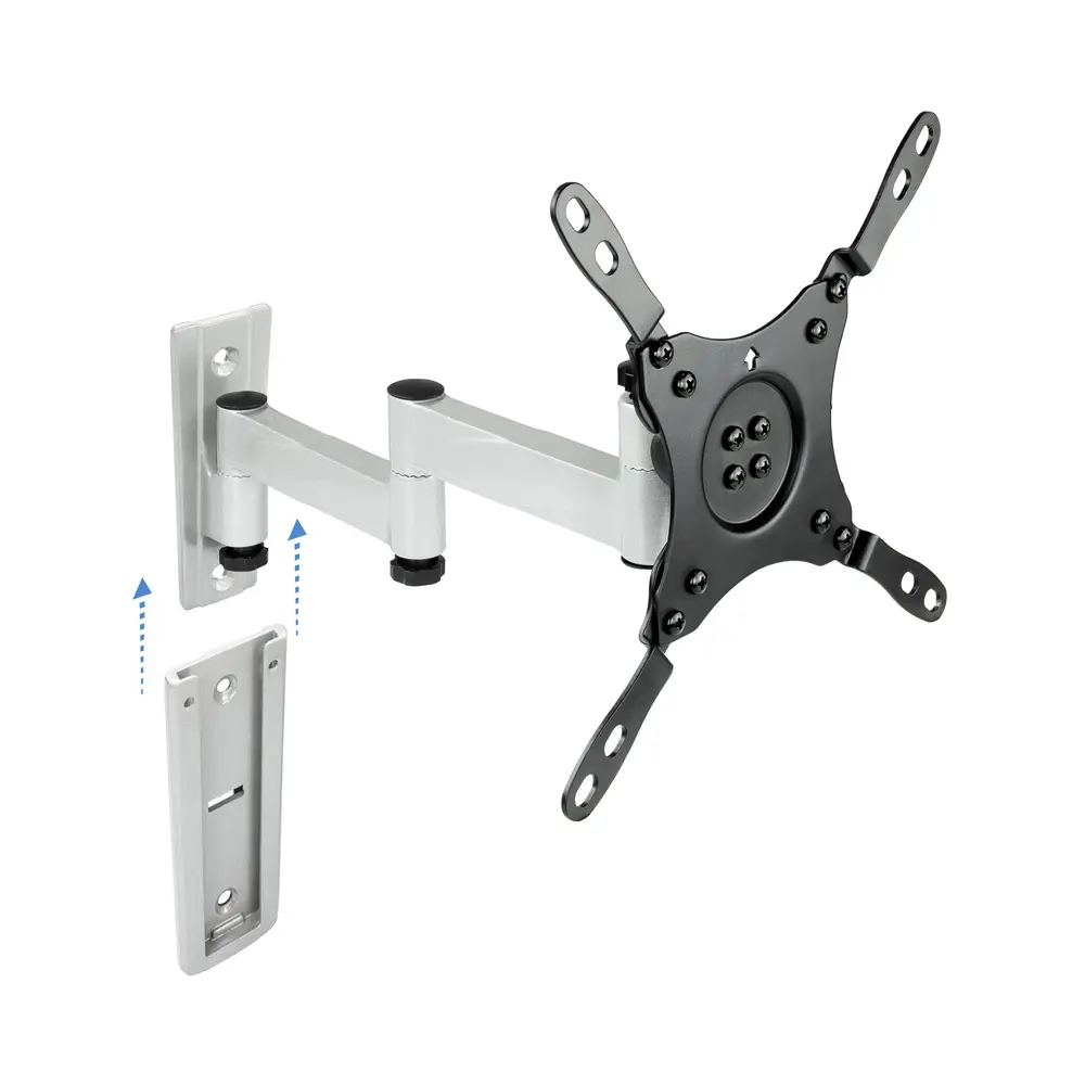 O suporte de parede para televisor com fixação fácil é a solução ideal para montar o seu televisor (13 até 42 polegadas, peso máx. 15 Kg). O suporte é adequado para todos os televisores com as especificações de montagem VESA 75×75, 100×100, 200×100 e 200×200 mm.