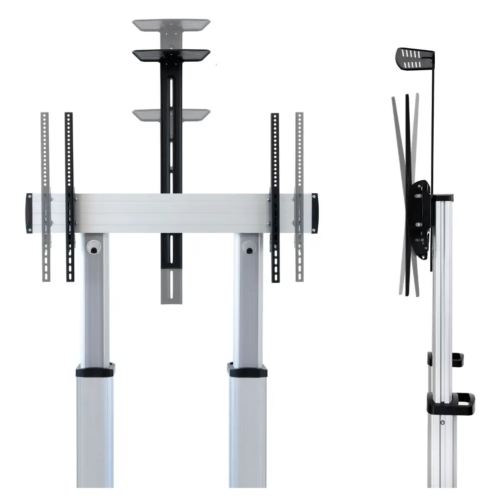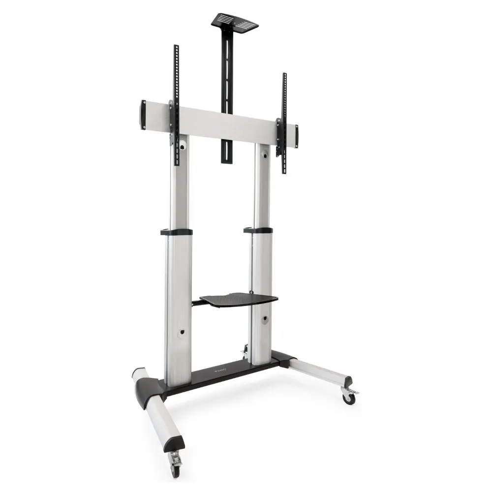 O Partenon é um apoio inspirado nos antigos templos gregos. A sua sólida estrutura pode suportar ecrãs de até 100kg sem qualquer problema. É feito de alumínio e, graças às suas rodas que o movem, será uma brincadeira de criança.