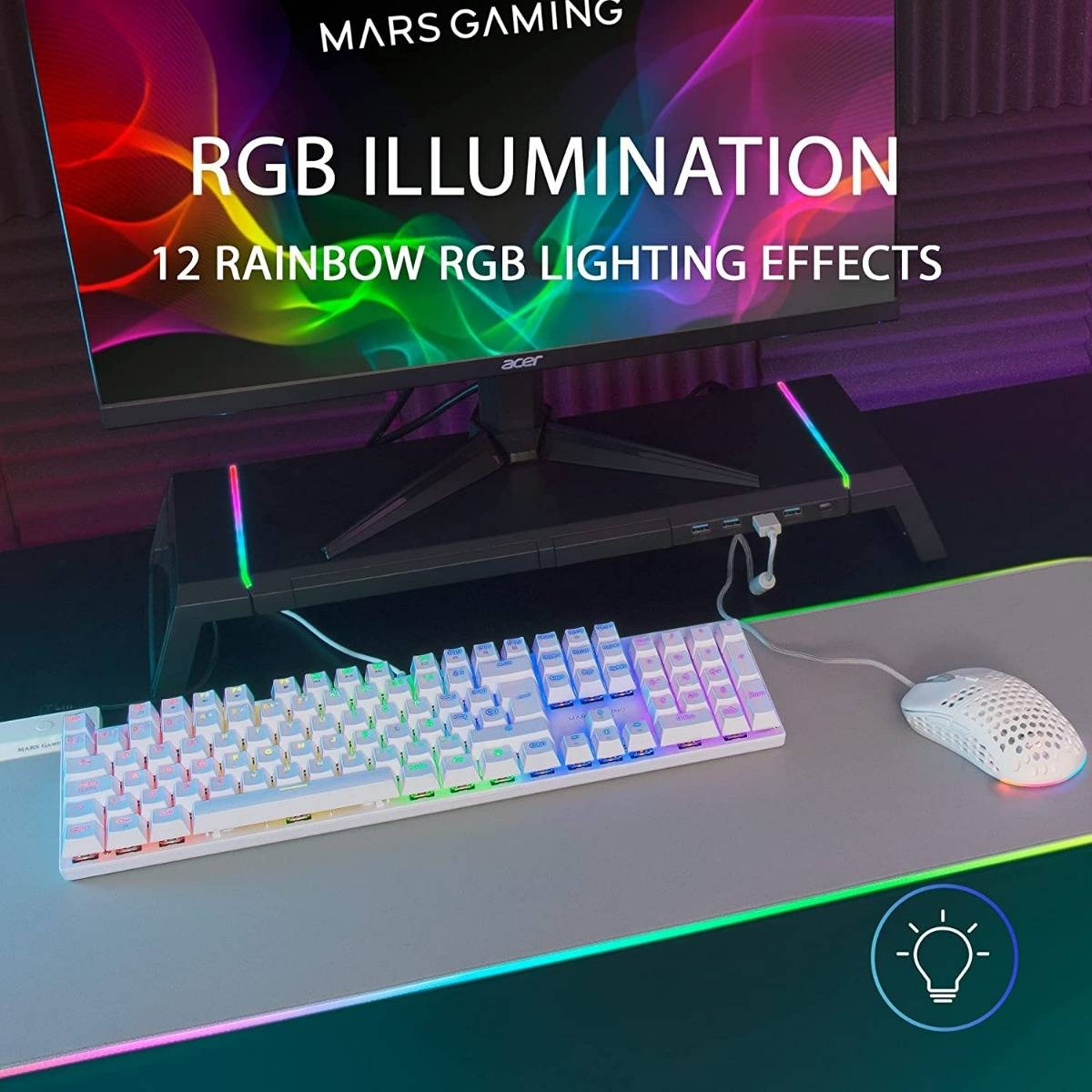 O sistema de iluminação LED Rainbow RGB do MK422 oferece 12 efeitos especiais para uma personalização máxima e uma iluminação espetacular.