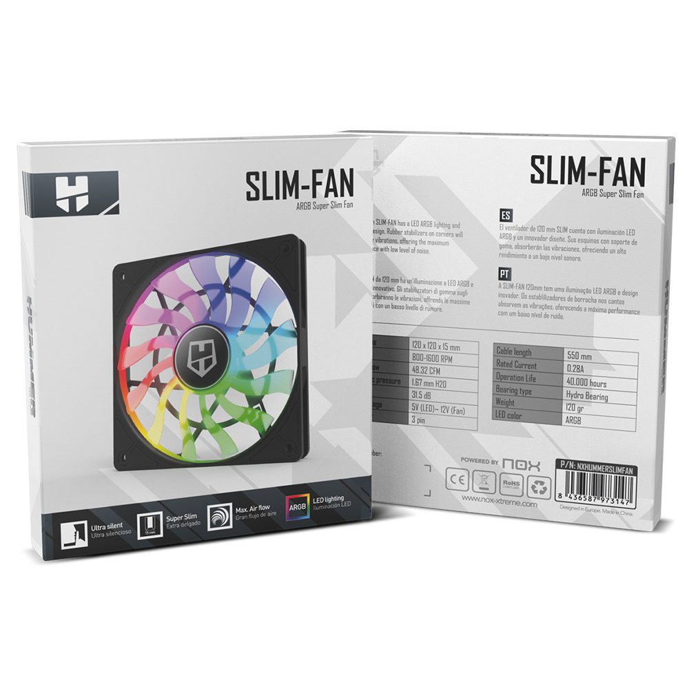 Com a Nox SLIM-FAN terá uma refrigeração eficiente e silenciosa. Com iluminação ARGB, esta ventoinha é perfeita para quem procura performance, sem abrir mão do design.Com uma estética incrível, a Nox SLIM-FAN é uma ventoinha de formato quadrado com tamanho de 120 x 120 x 25 mm.