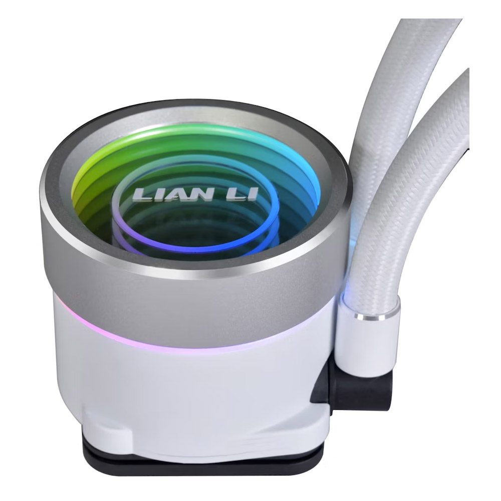 A tampa da bomba da série Galahad II Trinity tem três designs intercambiáveis, cada um com um aspeto único e dois anéis de cores que podem ser controlados individualmente com diferentes efeitos de iluminação.