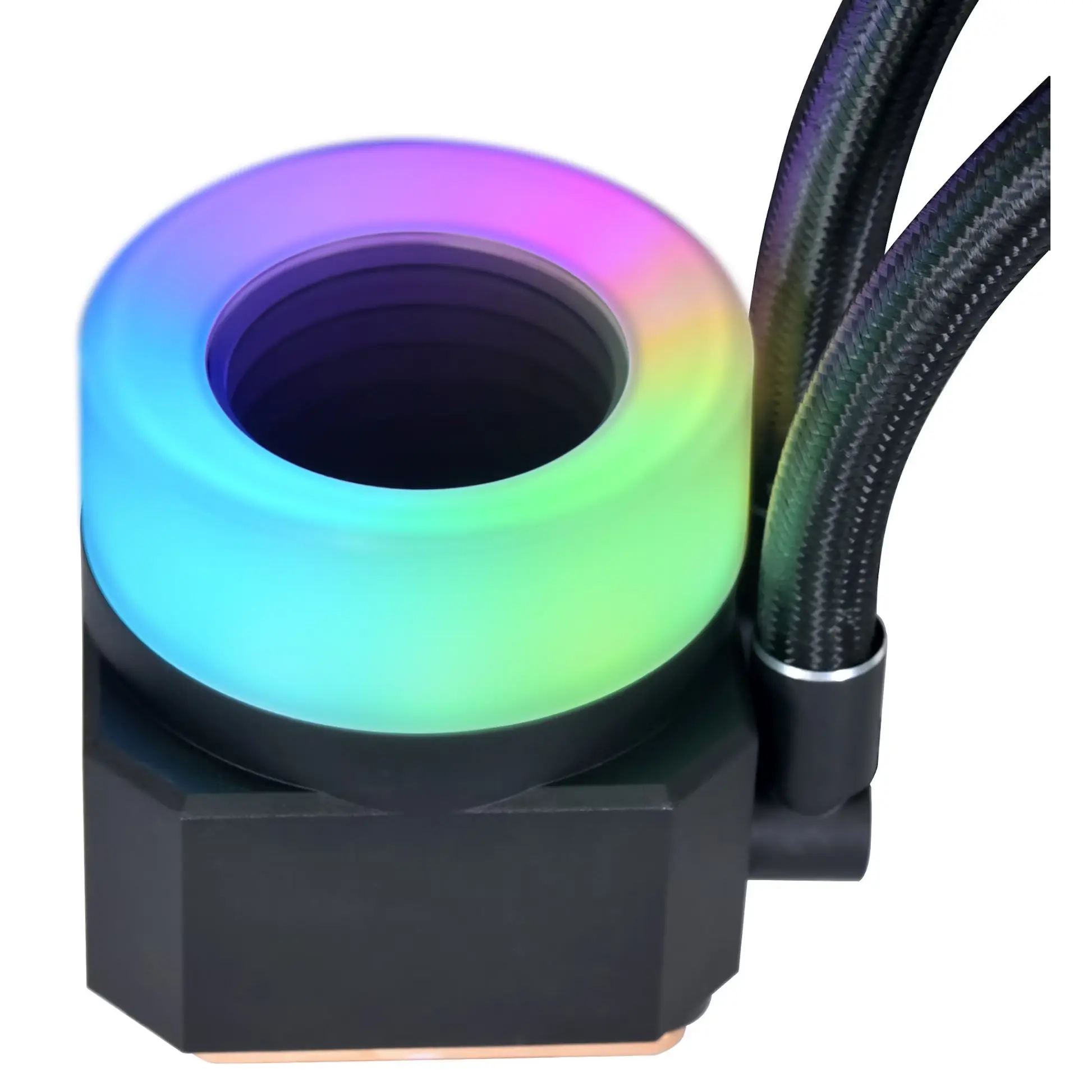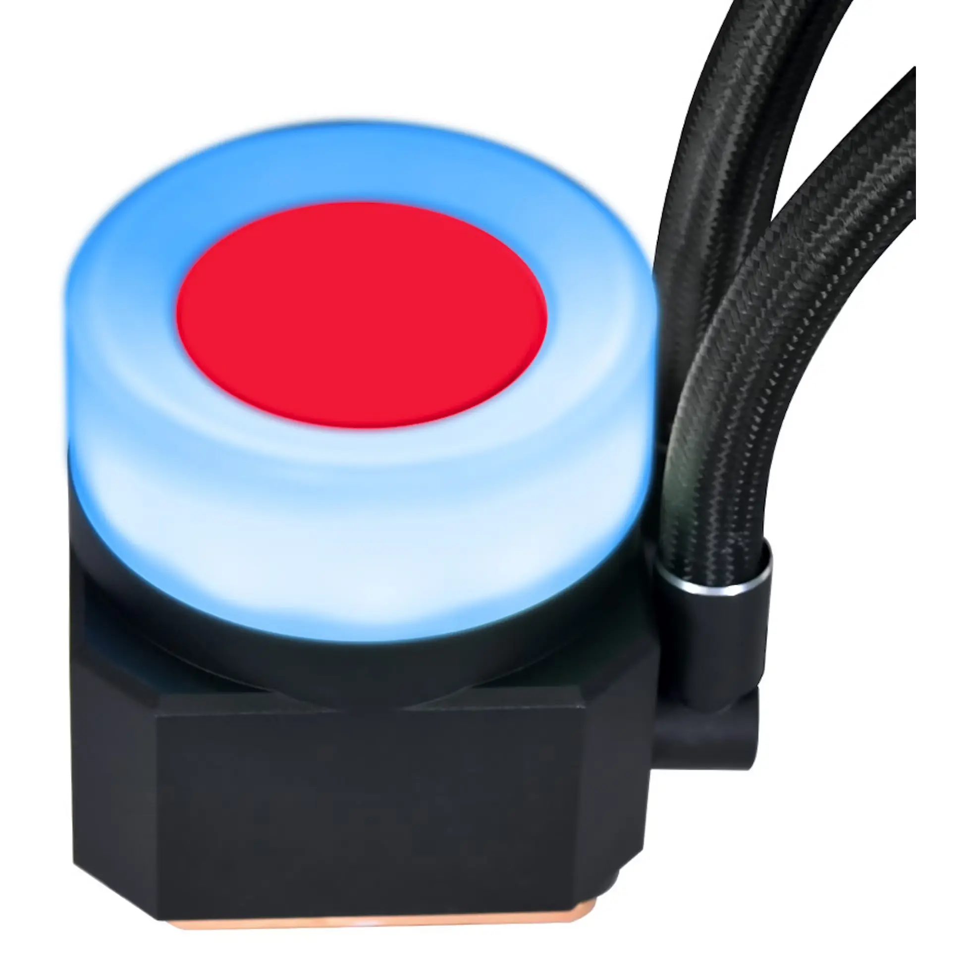 A tampa da bomba da série Galahad II Trinity tem três designs intercambiáveis, cada um com um aspeto único e dois anéis de cores que podem ser controlados individualmente com diferentes efeitos de iluminação.